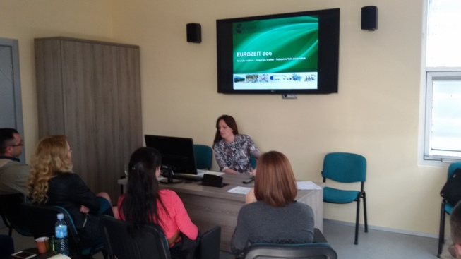 Druga po redu se predstavila kompanija “Eurozeit” iz Sremske Mitrovice, koja je specijalizovana za usluge outsourcinga proizvodnje i montaže kablova u automobilskoj industriji, bilo gotovih proizvoda ili komponenti po zahtevima kupca. Kompanija je predstavila svoj proizvodni proces, motive za učešće u ovom Projektu, kao i najveće probleme koje očekuje da će tokom projrkta rešiti. Prikazana je potrošnja energenata, kao i inicijlni predlog opcija u oblasti energetske i sirovinske efikasnosti.